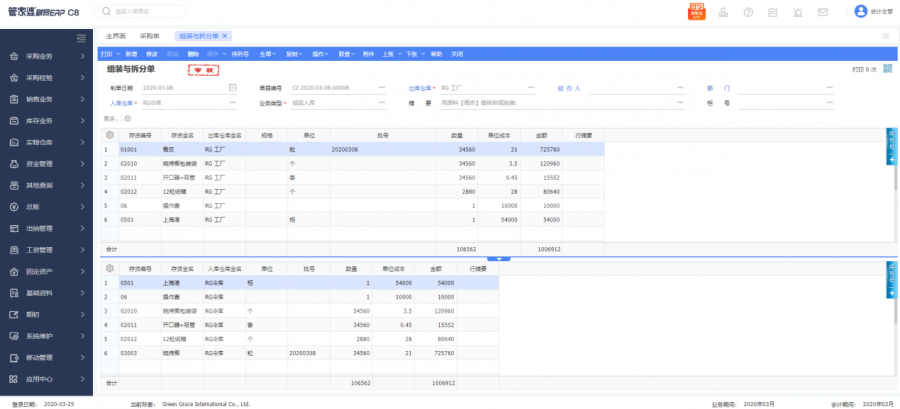 管家婆財貿ERP庫存管理系統通過出入庫業務以及調撥單、組裝拆分等功能,結合批號管理、庫存盤點功能的綜合運用,對倉庫庫存進行有效管理。