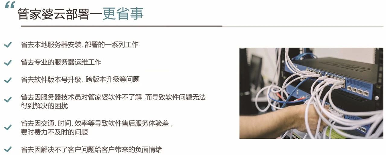 管家婆云建立了一套標(biāo)準(zhǔn)化、智能化、系統(tǒng)化的平臺(tái),為管家婆軟件客戶提供專業(yè)的大數(shù)據(jù)計(jì)算、服務(wù)器運(yùn)維/服務(wù)、安全保障以及增值服務(wù)等,為中小微企業(yè)打造云產(chǎn)品、云服務(wù)的生態(tài)鏈,幫助中小微企業(yè)低門檻上云,助力轉(zhuǎn)型!