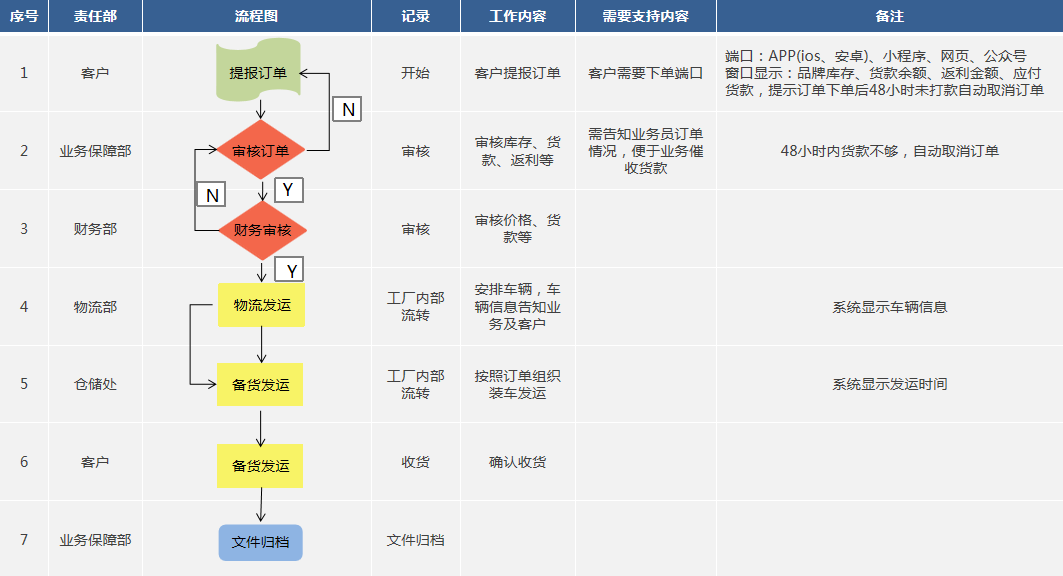 銷(xiāo)售流程:業(yè)務(wù)報(bào)單,錄入銷(xiāo)售訂單提交審核——財(cái)務(wù)審核訂單——庫(kù)管做銷(xiāo)售出庫(kù)單調(diào)入訂單,通過(guò)PDA添加序列號(hào),提交過(guò)賬——庫(kù)管到電腦端打印銷(xiāo)售訂單。