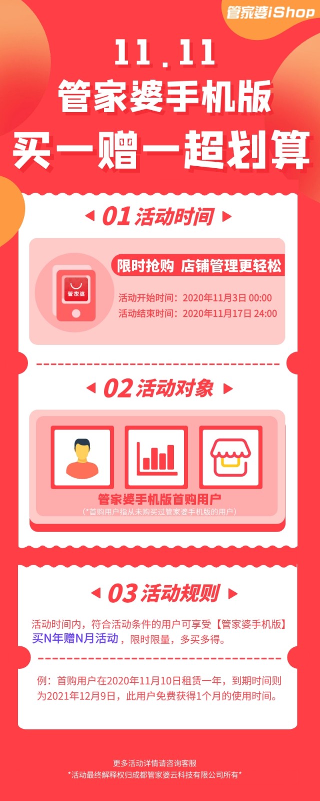 為了給各位老板們減負,今年的“雙11”,管家婆手機版感恩大回饋!摩拳擦掌的老板們,趕緊開啟購物狂歡模式啦。