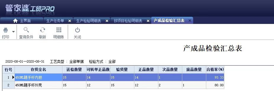 ? 生產檢驗明細表:主要查看生產檢驗的明細情況;